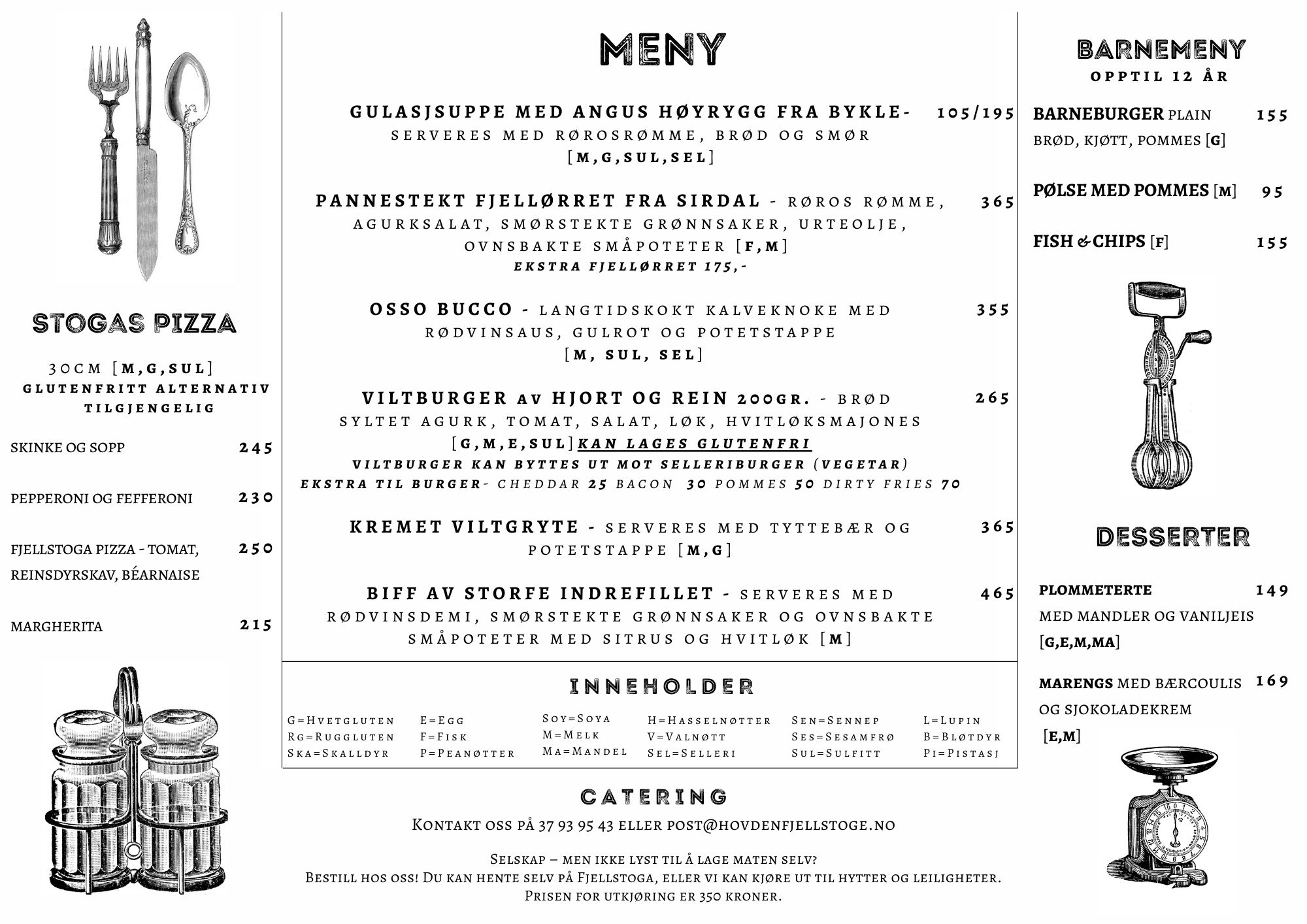 Meny Restaurant Fjellstoga