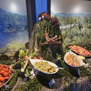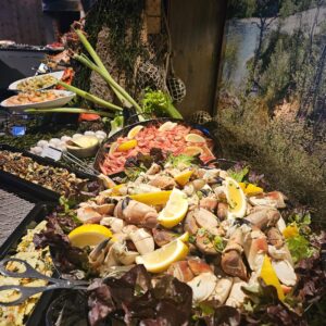 Denne kvelden byr vi på et overdådig utvalg sjømat, med alt fra ferske reker, blåskjell, krabbe, sjøkreps og snøkrabbe, til smaksrike salater og alt det deilige tilbehøret. Foretrekker du noe annet, byr vi også på spekemat i mange spennende varianter. Kvelden avsluttes med et fantastisk dessertbord.
